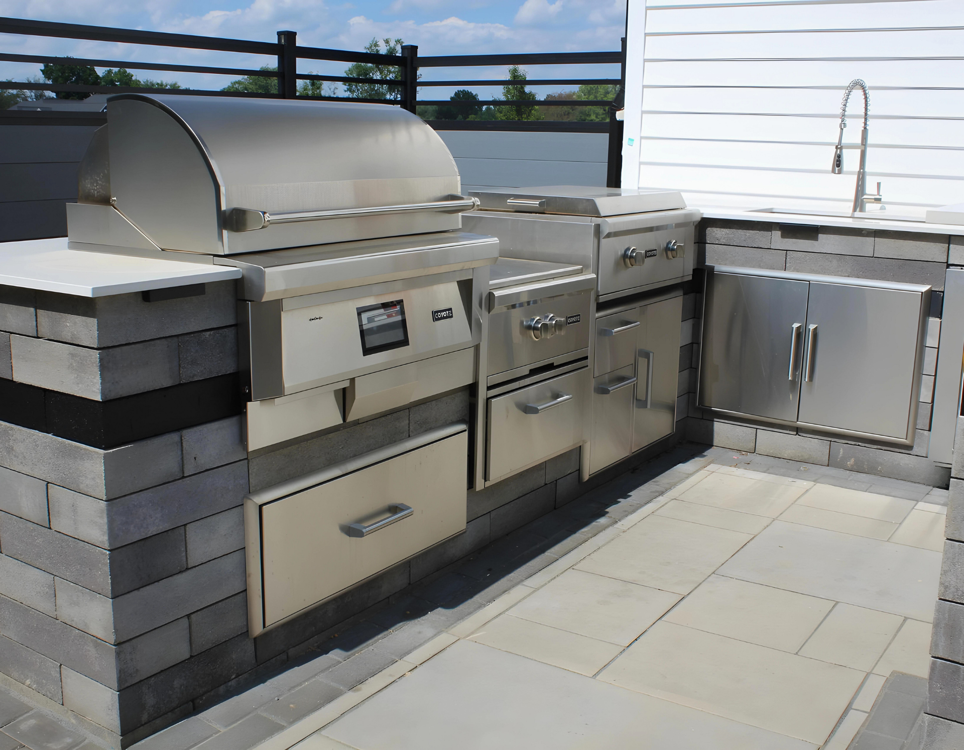 BUILD YOUR OUTDOOR KITCHEN WITH BLOCK OF YOUR CHOOSING AT A COMPLETELY CUSTOM SIZE AND SHAPE. THEN, USING COYOTE® GRILL PRODUCTS, WE CAN ADD ANY DEGREE OF ITEMS SUCH AS FRIDGES, SINKS, ICE CHESTS, SMOKERS, GRILLS, PIZZA OVENS, AND MUCH MORE.